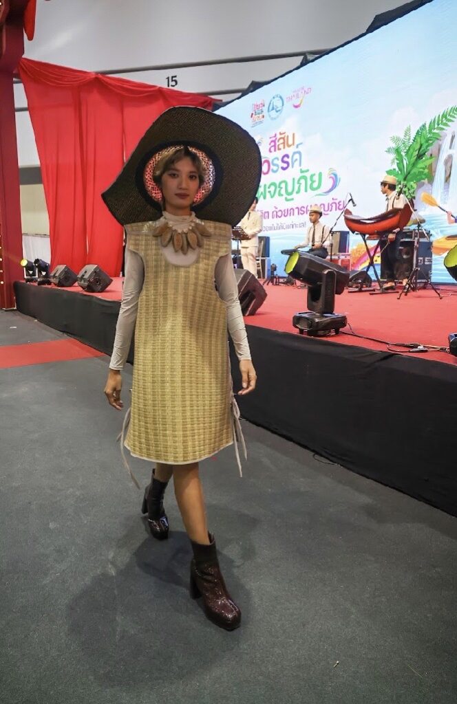 ผลงานที่สร้างสรรค์ขึ้นมาครั้งนี้ คืองานหัตถศิลป์ร่วมสมัยที่โดยได้นำ “กก” จากจังหวัดจันทบุรี มาต่อยอดผ่านการออกแบบ และถ่ายทอดเป็นแฟชั่นโชว์จากวัสดุธรรมชาติ “กก” ที่สะท้อนความงดงามของงานคราฟต์ไทย ในรูปแบบที่ร่วมสมัย และเข้าถึงผู้คนมากยิ่งขึ้น ความร่วมมือครั้งนี้ ไม่เพียงยกระดับงานหัตถกรรมไทย แต่ยังเป็นการสร้างมิติใหม่ให้ผู้ชมได้สัมผัสคุณค่าแห่งภูมิปัญญาไทยในบริบทของแฟชั่นผสานภูมิปัญญา ความคิดสร้างสรรค์ และแนวคิดเศรษฐกิจพอเพียง สู่ผลิตภัณฑ์ GI อันเป็นมรดกภูมิปัญญาทางวัฒนธรรมของชาติ เพื่อชุมชน สิ่งแวดล้อม และความยั่งยืนในอนาคต””