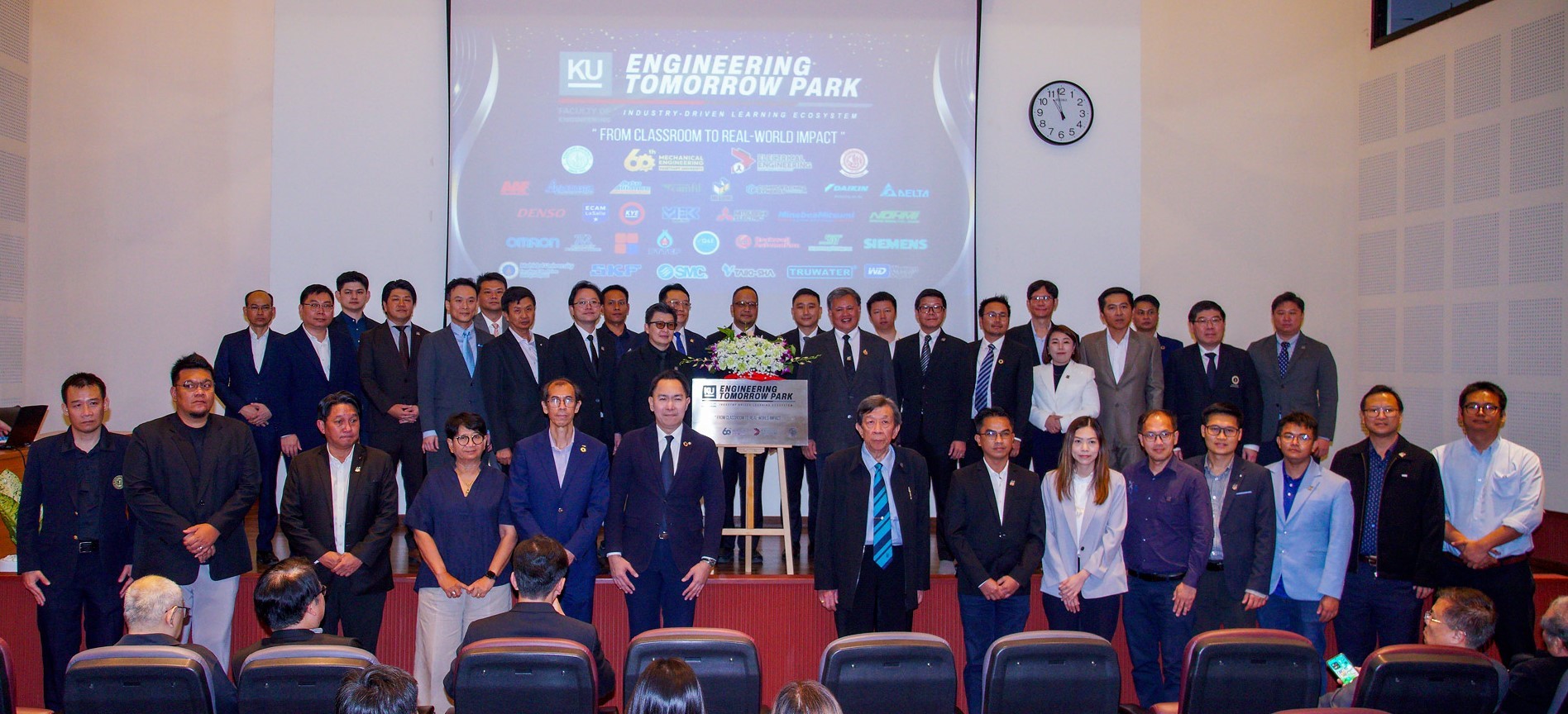 8 มีนาคม 2569 — ภาควิชาวิศวกรรมเครื่องกล คณะวิศวกรรมศาสตร์ มหาวิทยาลัยเกษตรศาสตร์ จัดงานครบรอบ 60 ปีของภาควิชา พร้อมจัดพิธีแถลงข่าวเปิดตัว MISUMI Learning Center และเปิดตัวแพลตฟอร์มความร่วมมืออุตสาหกรรม Engineering Tomorrow Park โดยได้รับเกียรติจาก ดร.ดำรงค์ ศรีพระราม รักษาการอธิการบดีมหาวิทยาลัยเกษตรศาสตร์ เป็นประธานในพิธีเปิดและร่วมแถลงข่าว เพื่อสะท้อนวิสัยทัศน์ของมหาวิทยาลัยในการขับเคลื่อนการศึกษาและการพัฒนากำลังคนด้านวิศวกรรมร่วมกับภาคอุตสาหกรรมระดับโลก