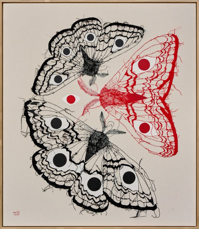 โดยกระบวนการสร้างสรรค์เริ่มจากโครงร่างเบาบาง ก่อนจะค่อย ๆ คลี่คลายไปตามจังหวะของการลงมือทำ สำหรับศิลปิน การปักผ้าเปรียบเสมือนการเยียวยาและการซ่อมแซม เป็นทั้งการกอบกู้สิ่งที่เปราะบาง และช่วงเวลาแห่งสมาธิที่เชื่อมโยงภายใน ขณะเดียวกันยังสะท้อนเสียงของผู้หญิงในฐานะพลังเล็ก ๆ ที่เคยถูกมองข้าม ผ่านเข็มและเส้นด้ายที่บันทึกความรู้สึกอย่างลึกซึ้งและเป็นมนุษย์